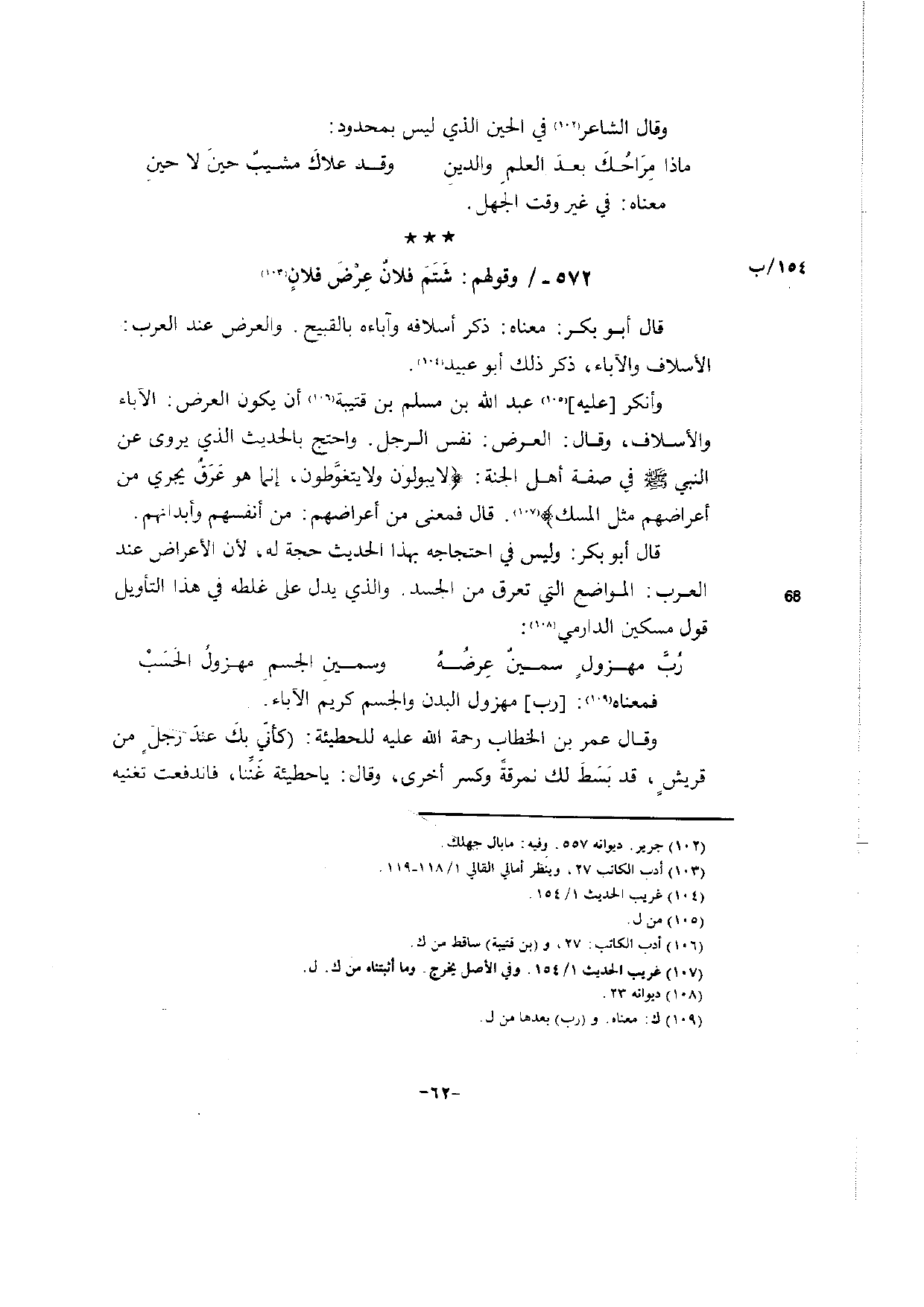 572 - / وقولهم: شَتَمَ فلانٌ عِرْضَ فلانٍ