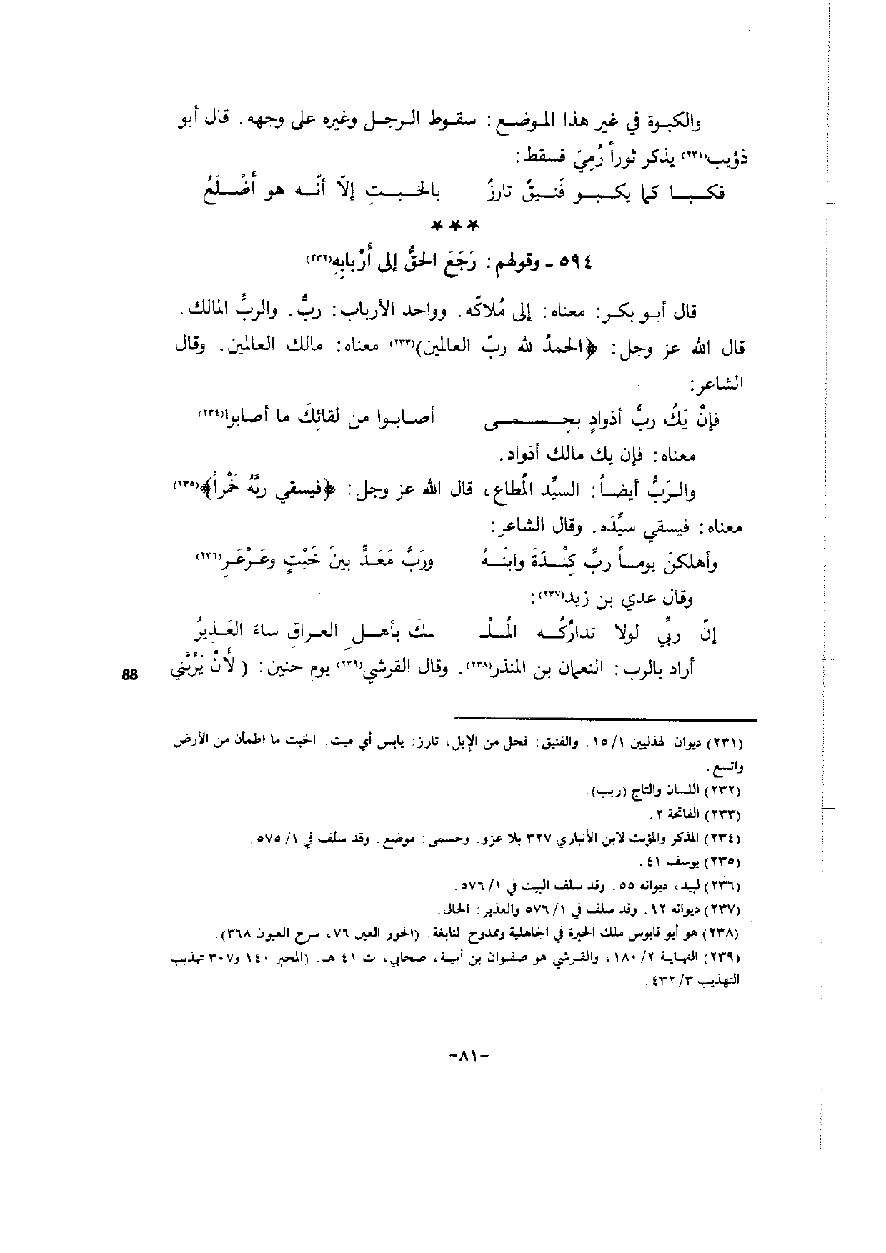 (236) لبيد، ديوانه 55. وقد سلف البيت في 1 / 576.