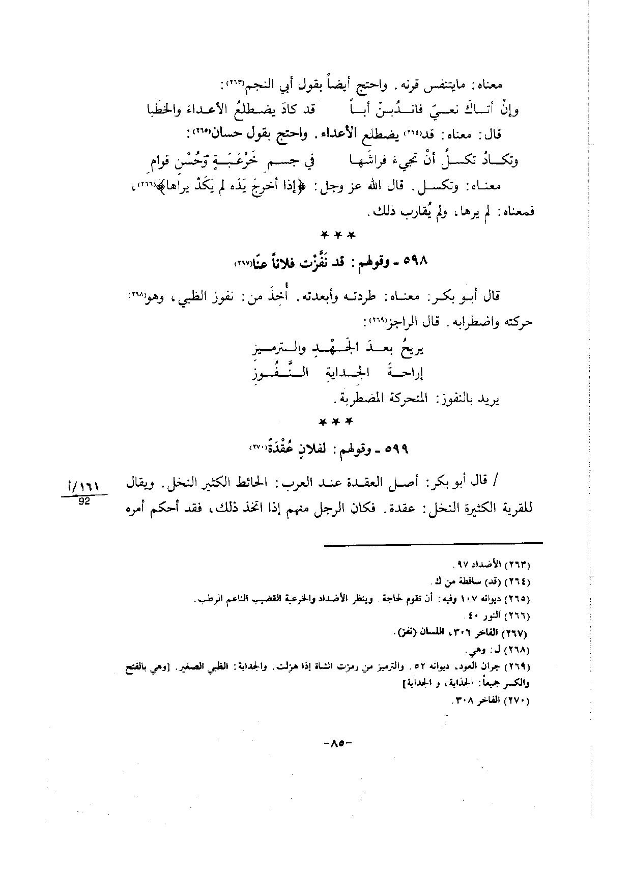 (267) الفاخر 306، اللسان (نفز) .