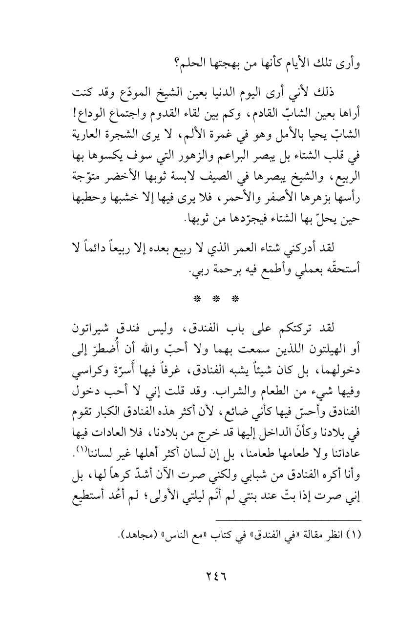 (¬1) انظر مقالة «في الفندق» في كتاب «مع الناس» (مجاهد).