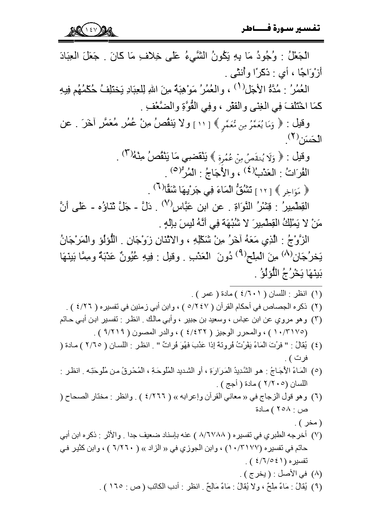 الفراتُ: العدبُ، والأجاجُ: المُرُّ.