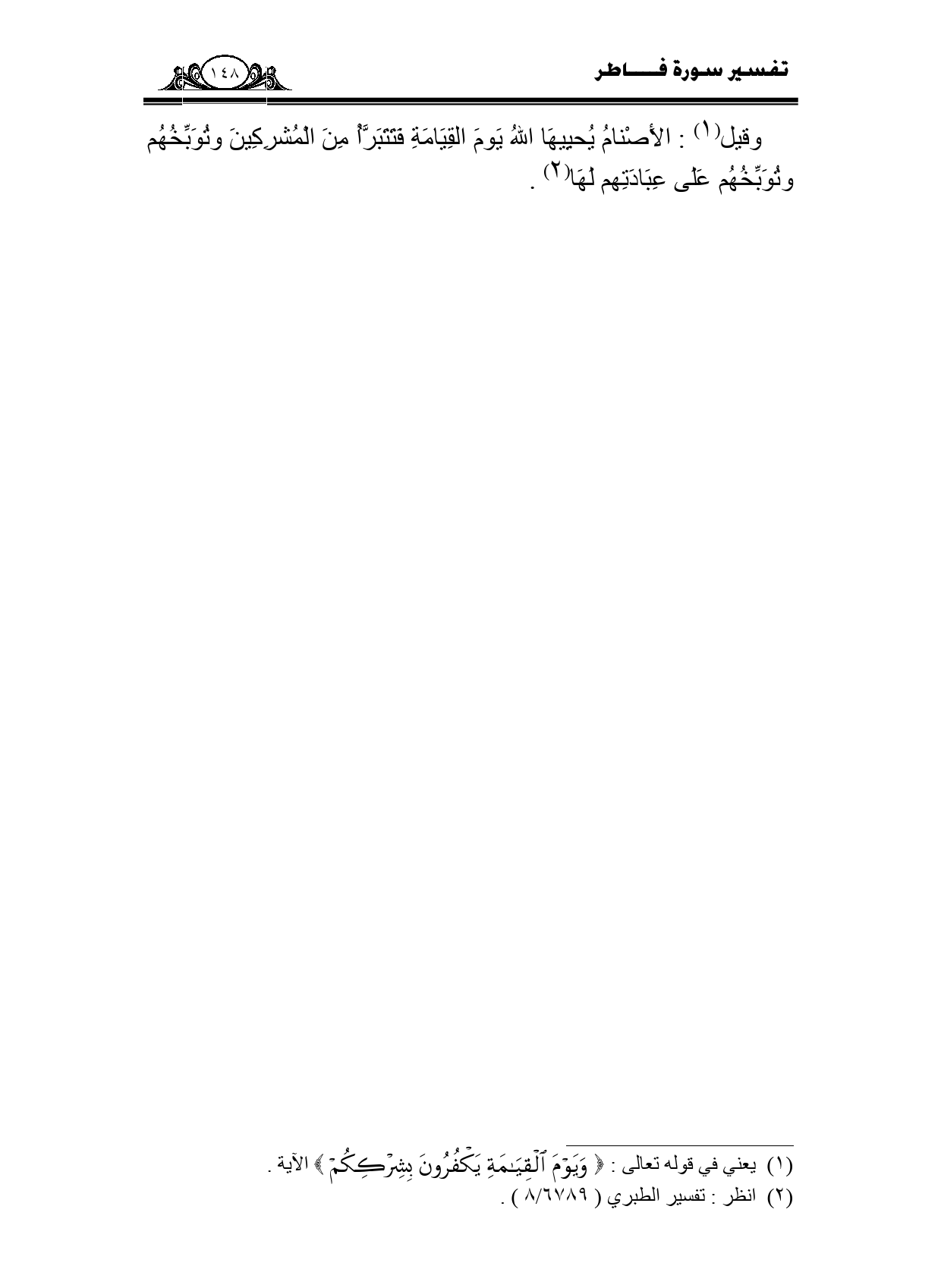 وقيل: الأصنام يحييها الله يوم القيامة فتتبرأ من المشركين وتوبخهم وتوبخُهُم على عبادتهم لها.
