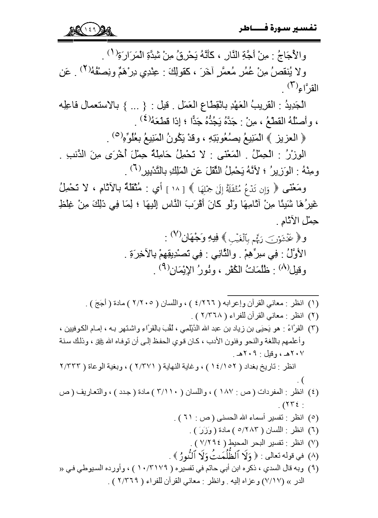 ومعنى {وَإِنْ تَدْعُ مُثْقَلَةٌ إِلَى حِمْلِهَا} [18] أي: مثقلة بالآثام، لا تحمل غيرها شيئاً من آثامها ولو كان أقرب الناس إليها، لما في ذلك من غلظ حمل الآثام.