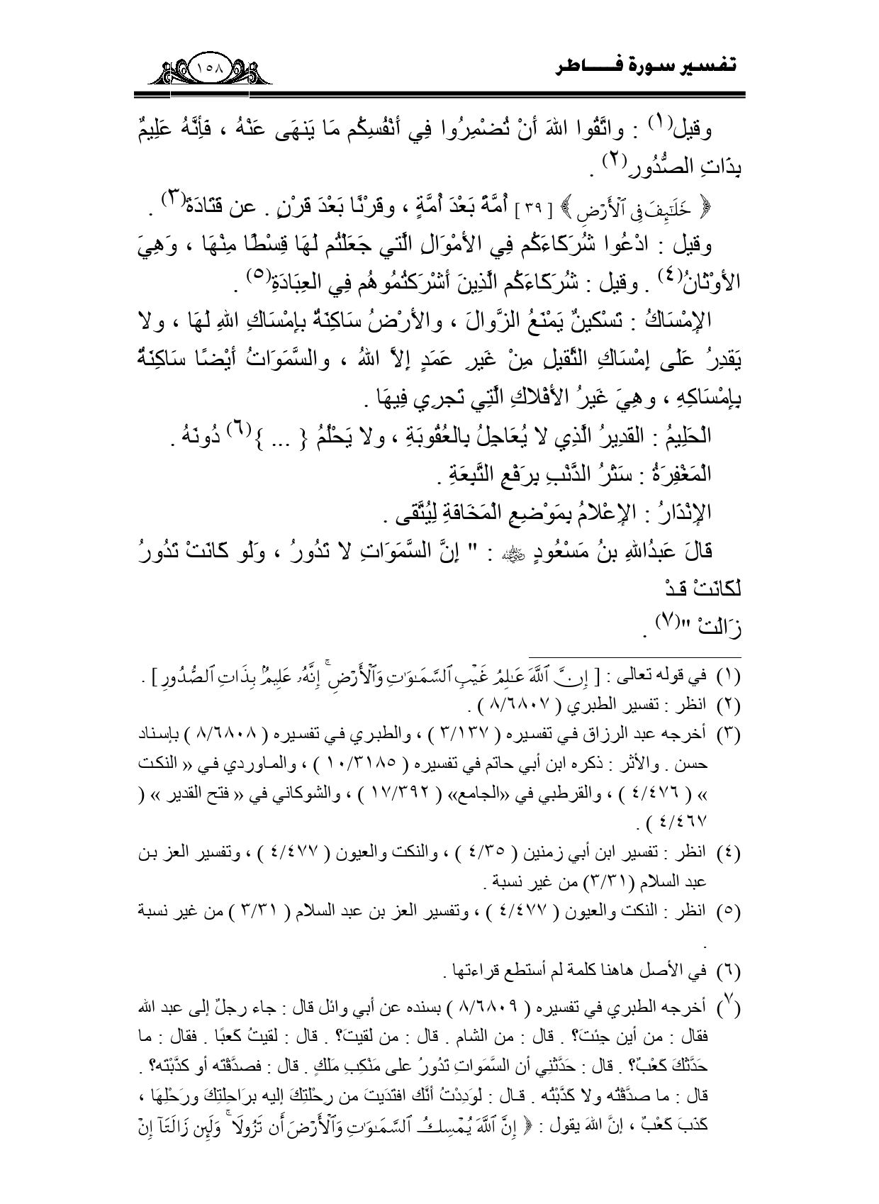 {خَلَائِفَ فِي الْأَرْضِ} [39] أمة بعد أمة، وقرنا عد قرن. عن قتادة.