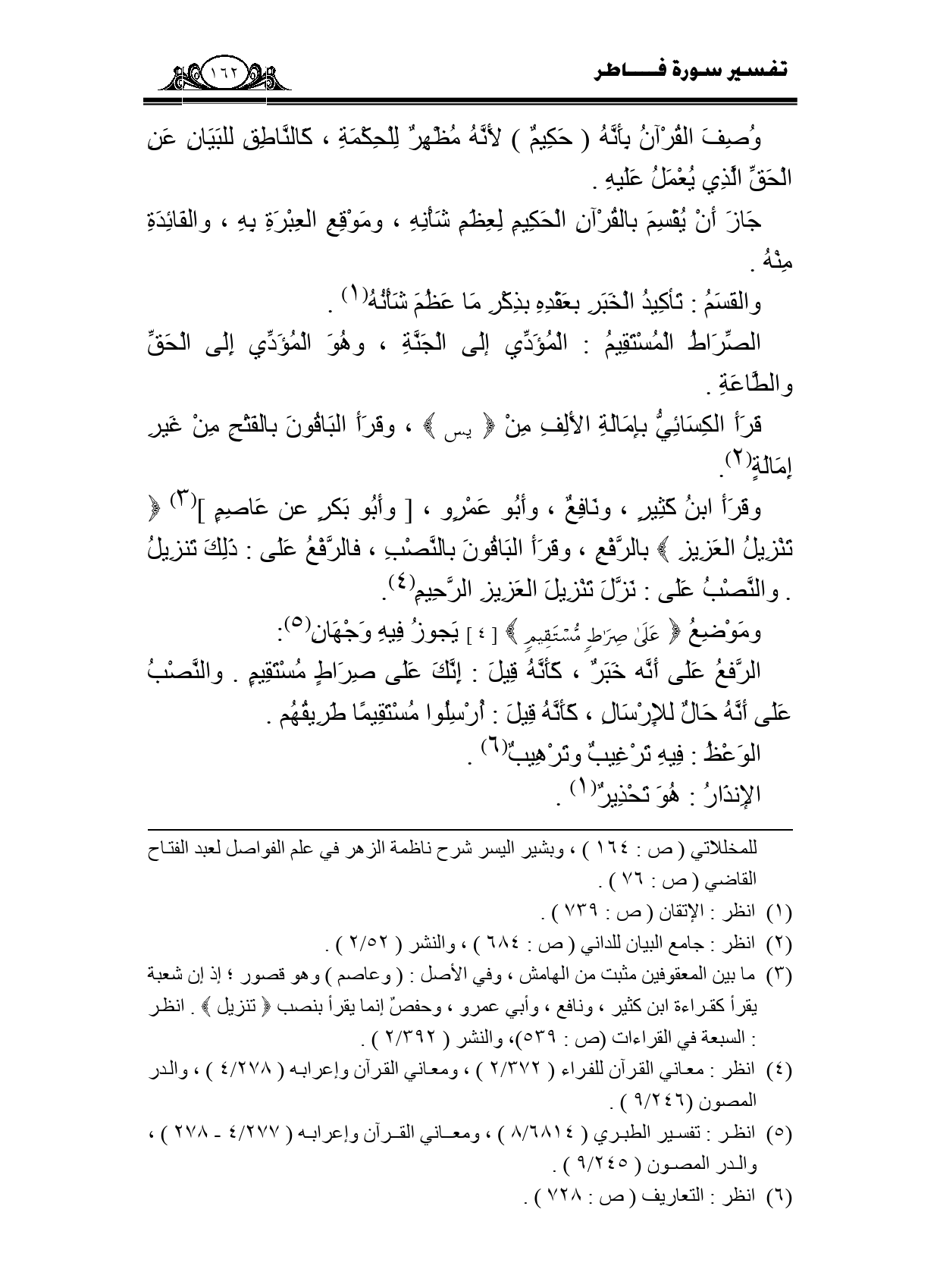 وقرأ ابن كثير، ونافع، وأبو عمرو، [وأبو بكر عن عاصم] {تَنْزِيلُ الْعَزِيزِ} بالرفع، وقرأ الباقون بالنصب، فالرفع على: ذلك تنزيل. والنصب على: نزل تنزيل العزيز الرحيم.