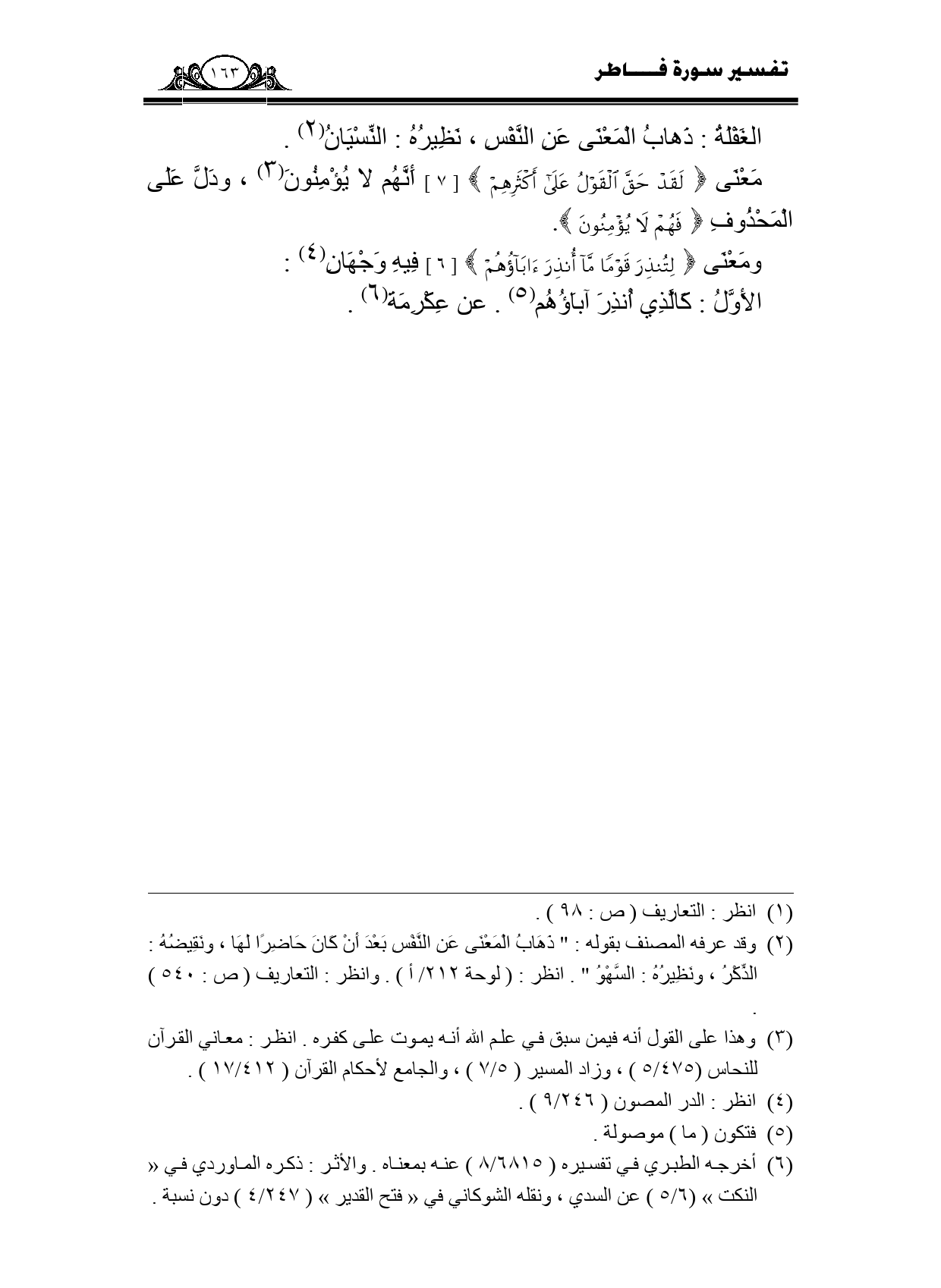 ومعنى {لِتُنْذِرَ قَوْمًا مَا أُنْذِرَ آبَاؤُهُمْ} [6] فيه وجهان: