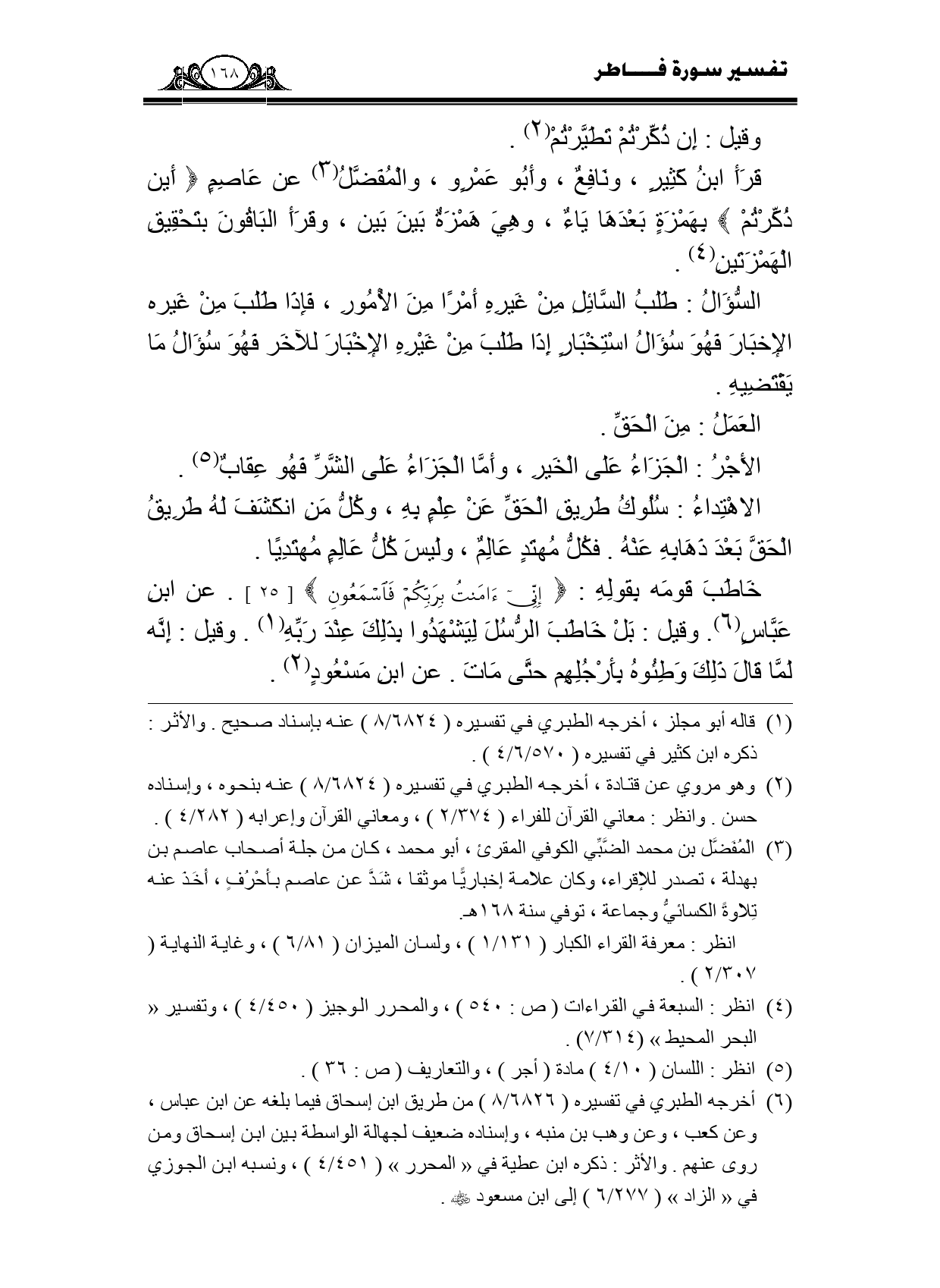 قرأ ابن كثير، ونافع، وأبو عمرو، والمفضل عن عاصم {أَئِنْ ذُكِّرْتُمْ} بهمزة بعدها ياء، وهي همزة بين بين، وقرأ الباقون بتحقيق الهمزتين.