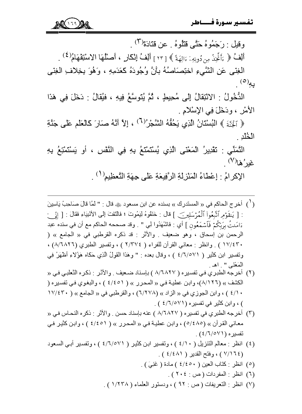 {الْجَنَّةِ} البستان الذي يحقه الشجر، إلا أنه صار كالعلم على جنة الخلد.