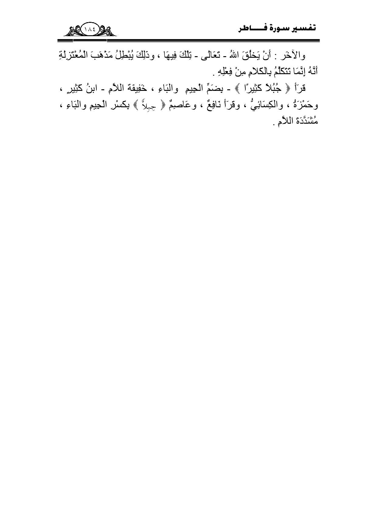 قرأ {جِبِلًّا كَثِيرًا} - بضم الجيم والباء، خفيفة اللام - ابن كثير، وحمزة، والكسائي، وقرأ نافع، وعاصم {جِبِلًّا} بكسر الجيم والباء، مشددة اللام.