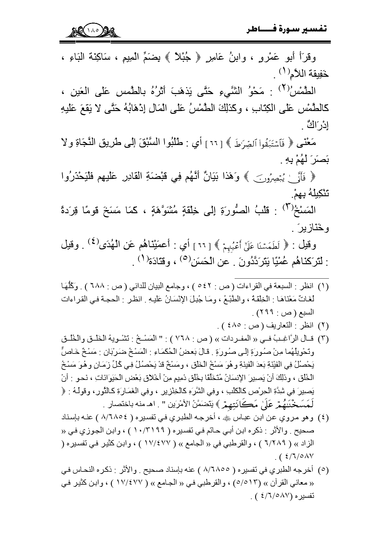 معنى {فَاسْتَبَقُوا الصِّرَاطَ} [66] أي: طلبوا السبق إلى طريق النجاة ولا بصر لهم به.
