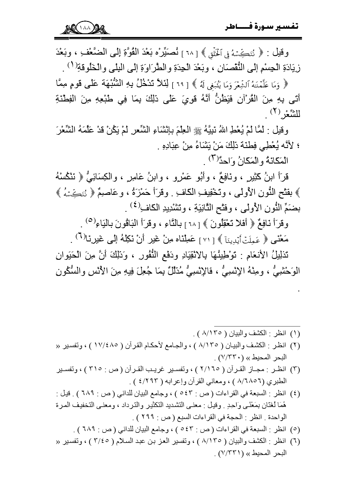 وقرأ نافع {أَفَلَا يَعْقِلُونَ} [68] بالتاء، وقرأ الباقون بالياء.