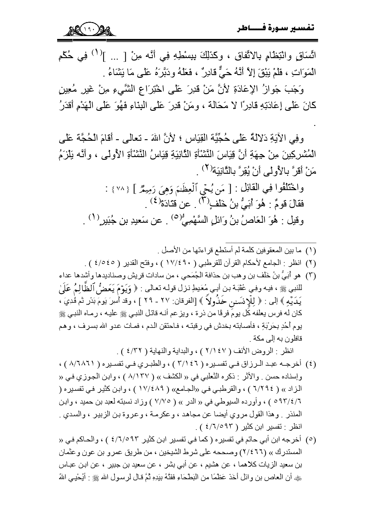 واختلفوا في القائل: {مَنْ يُحْيِي الْعِظَامَ وَهِيَ رَمِيمٌ} [78] :