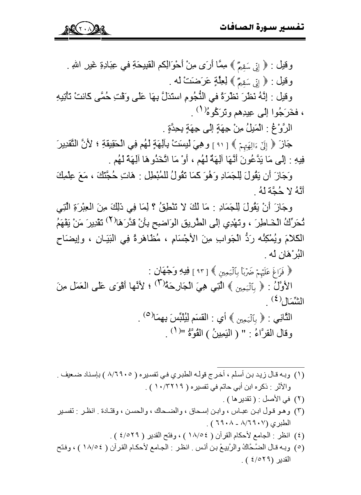 {فَرَاغَ عَلَيْهِمْ ضَرْبًا بِالْيَمِينِ} [93] فيه وجهان: