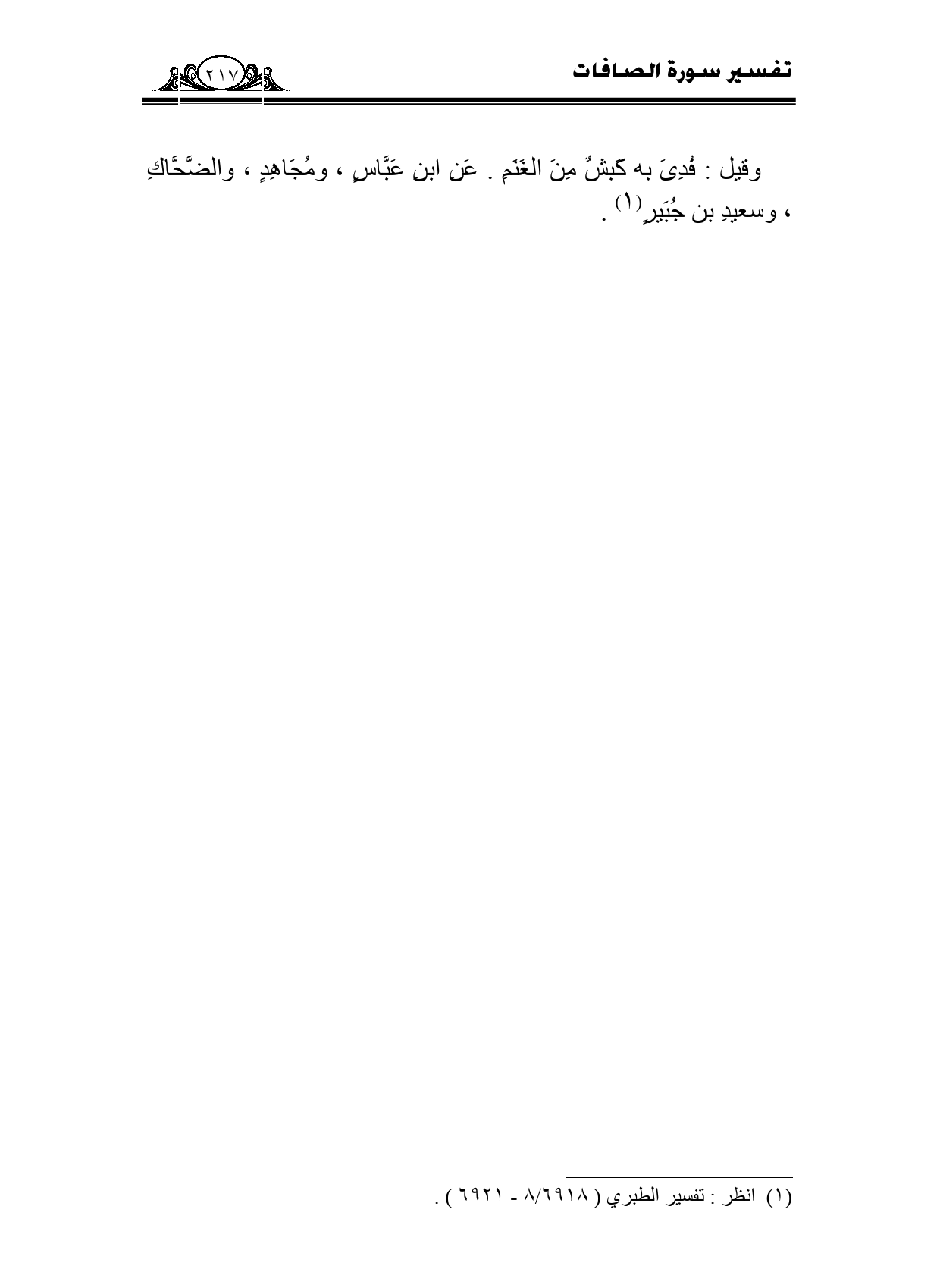 وقيل: فدىَ به كبش من الغنمِ. عن ابن عباس، ومجاهدٍ، والضحاكِ، وسعيد بن جُبيرِ.