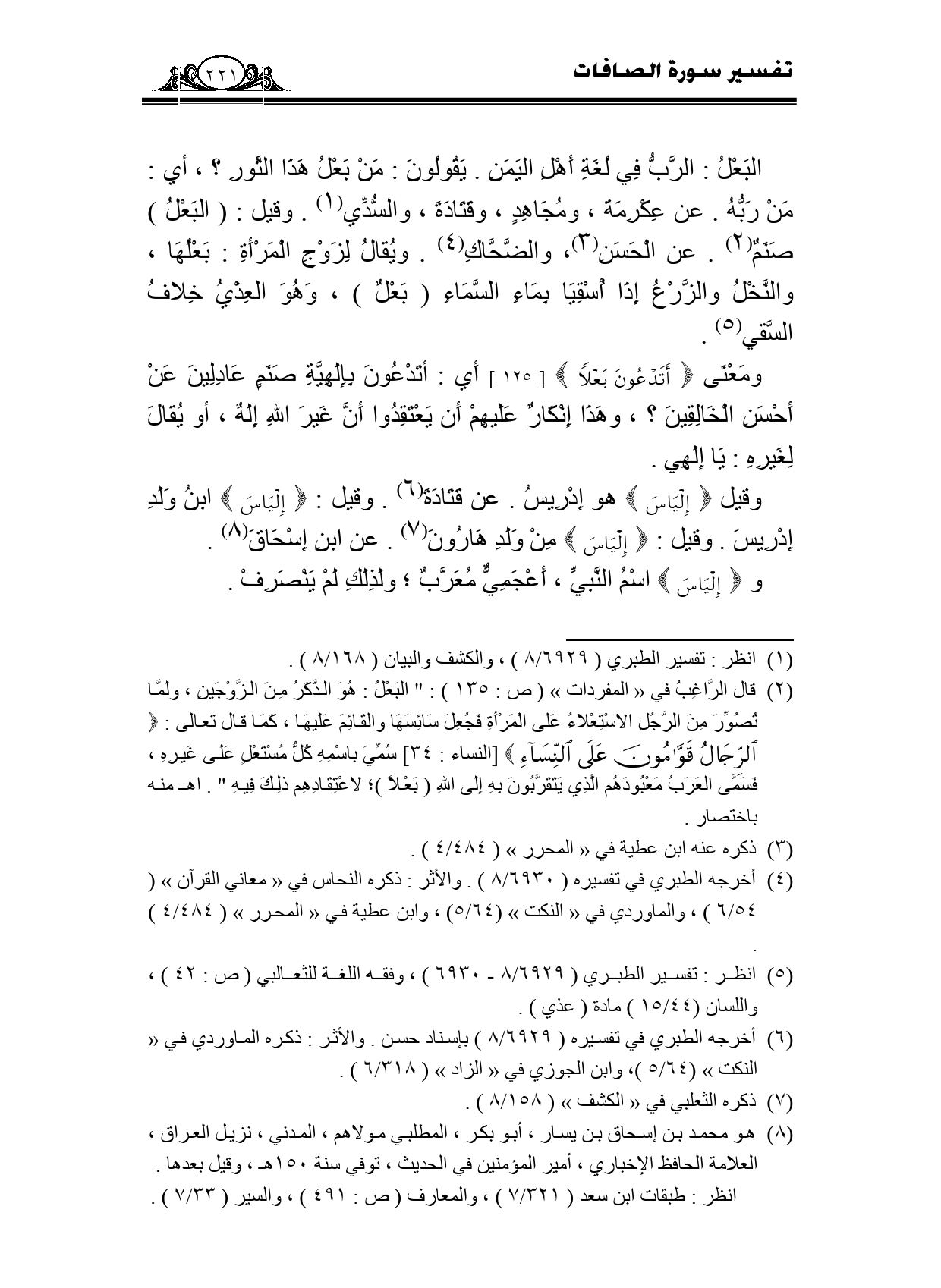 ومعنى {أَتَدْعُونَ بَعْلًا} [125] أي: أتدعون بإلهية صتم عادلين عن أحسن الخالقين؟. وهذا إنكار عليهم أن يعتقدوا أن غير الله إله، أو يقال لغيره: يا إلهي.