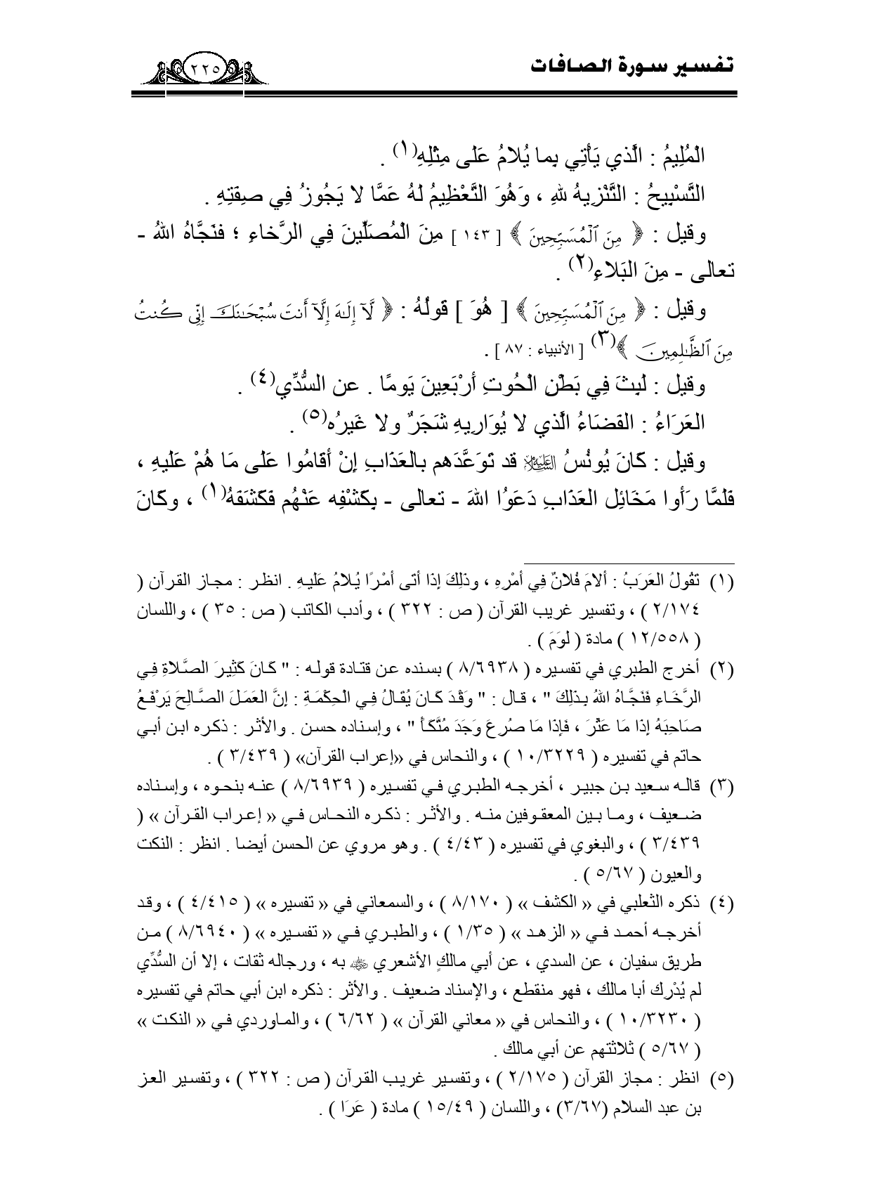 وقيل: {مِنَ الْمُسَبِّحِينَ} [143] من المصلين في الرخاء؛ فنجاه الله - تعالى - من البلاء.