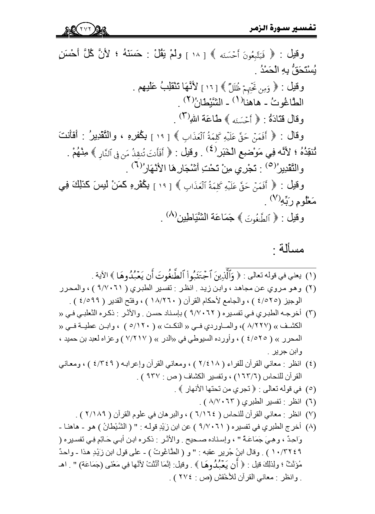 وقيل: {الطَّاغُوتُ} جماعة الشياطين.
