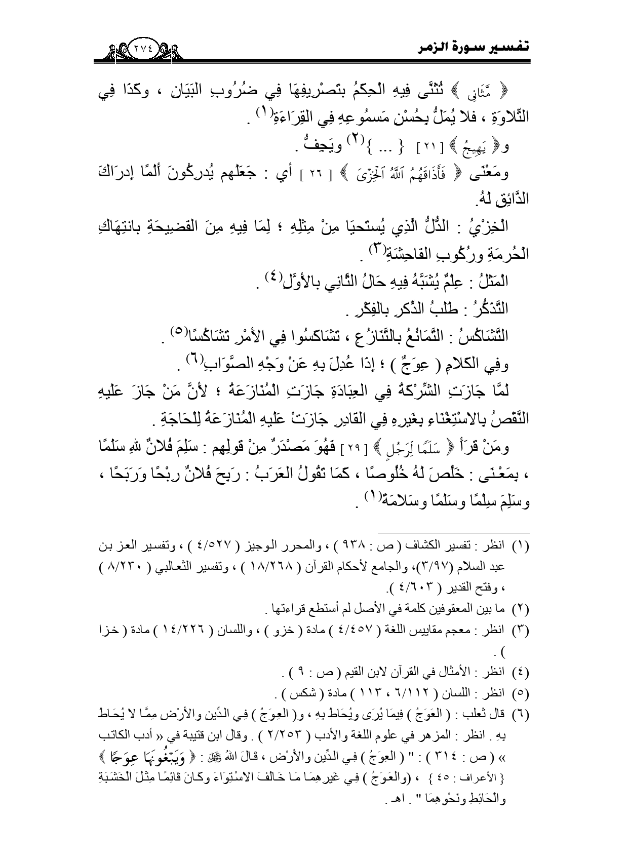 وفي الكلام (عوج) ؛ إذا عدل به عن وجه الصواب.
