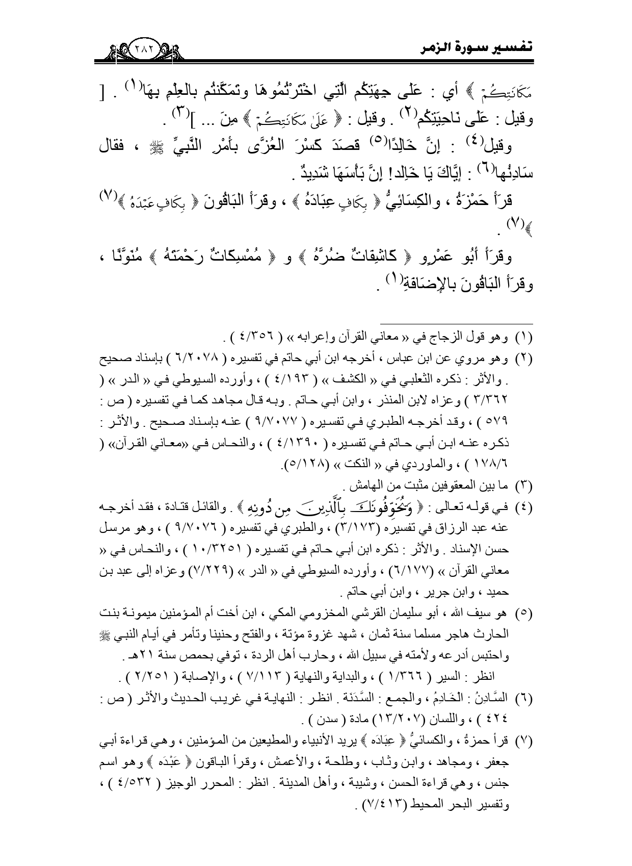 قرأ حمزة والكسائي {بِكَافٍ عَبْادَهُ} ، وقرأ الباقون {بِكَافٍ عَبْدَهُ} .