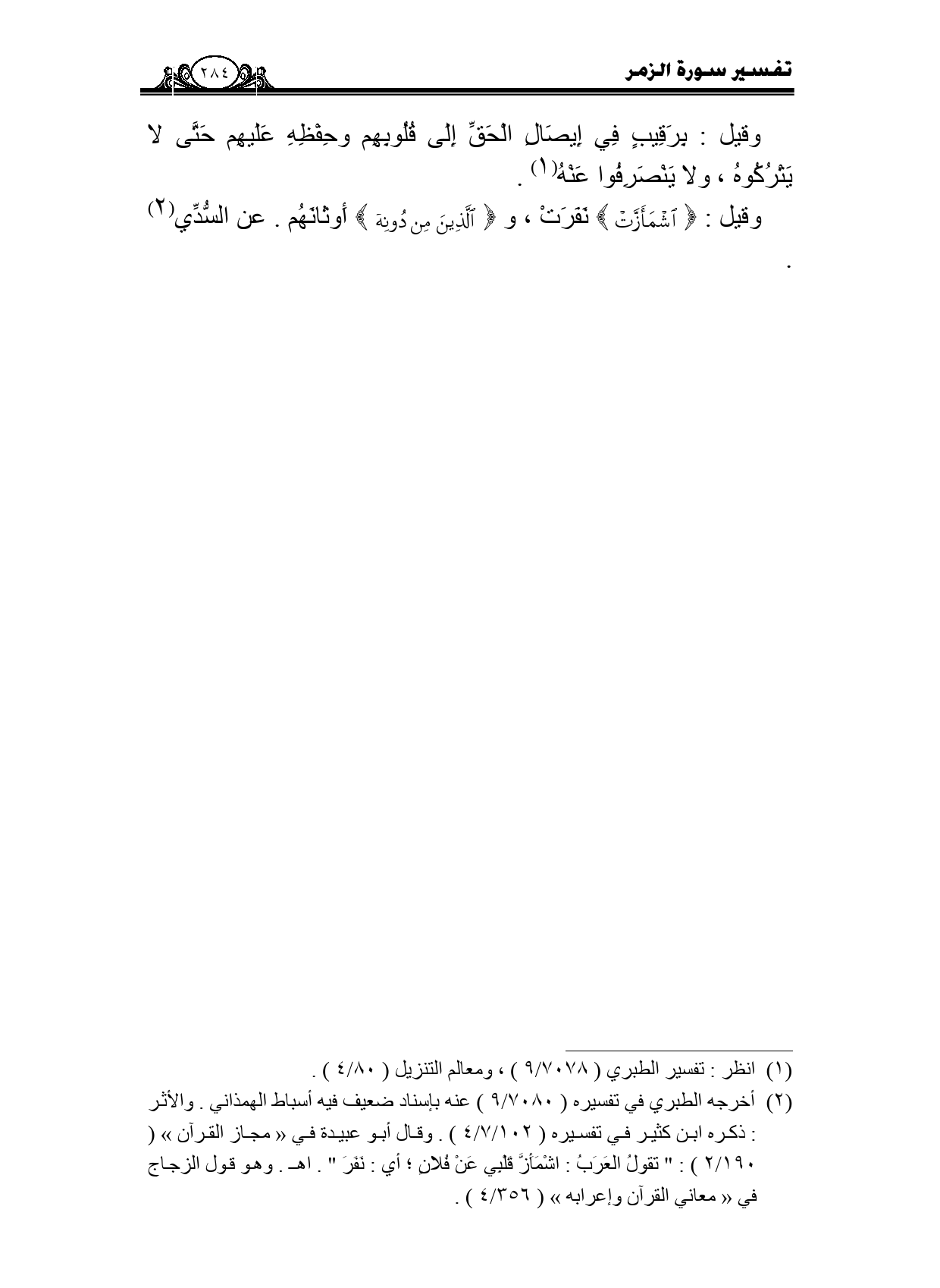 وقيل: {اشْمَأَزَّتْ} نفرت، و {الَّذِينَ مِنْ دُونِهِ} أوثانهم. عن السدي