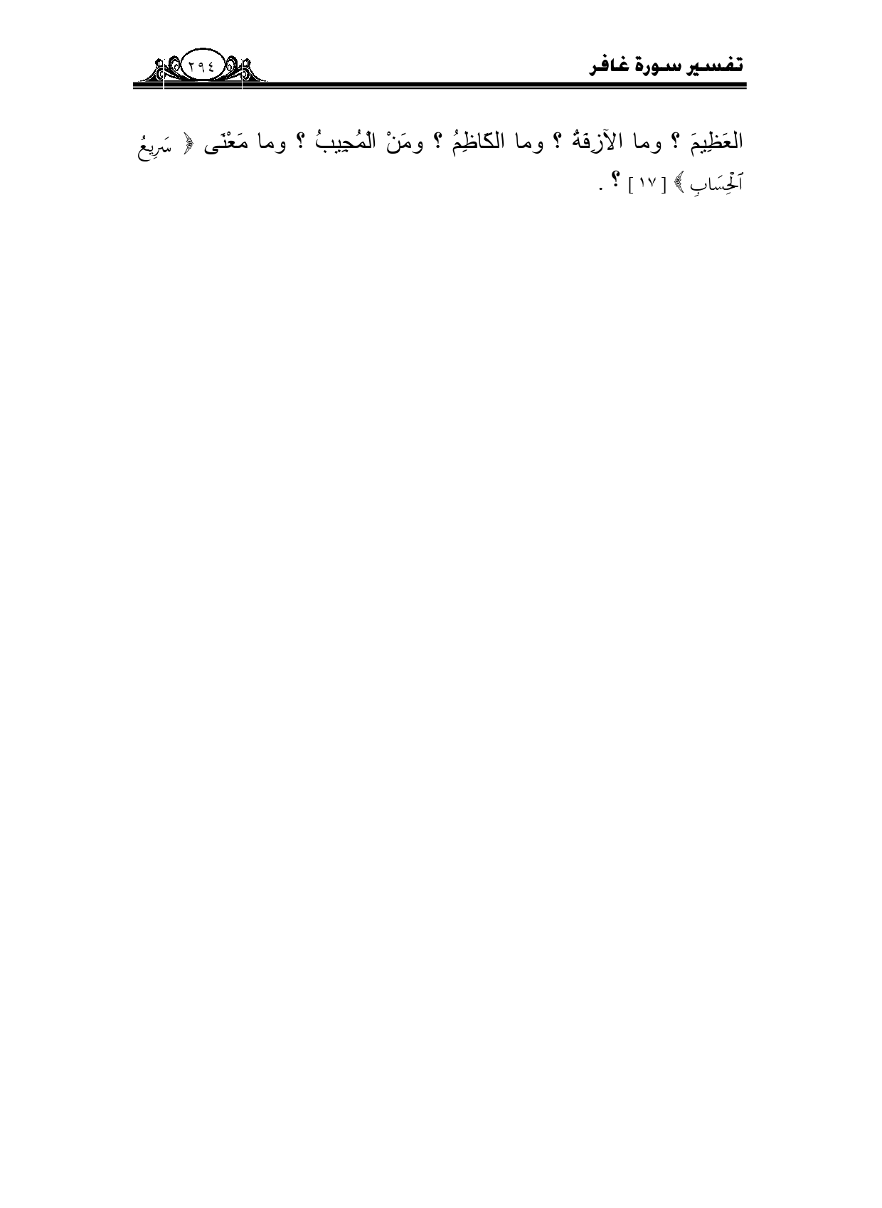 العظيم؟ وما الآزفة؟ وما الكاظم؟ ومن المجيب؟ وما معنى {سَرِيعُ الْحِسَابِ} [17] ؟.