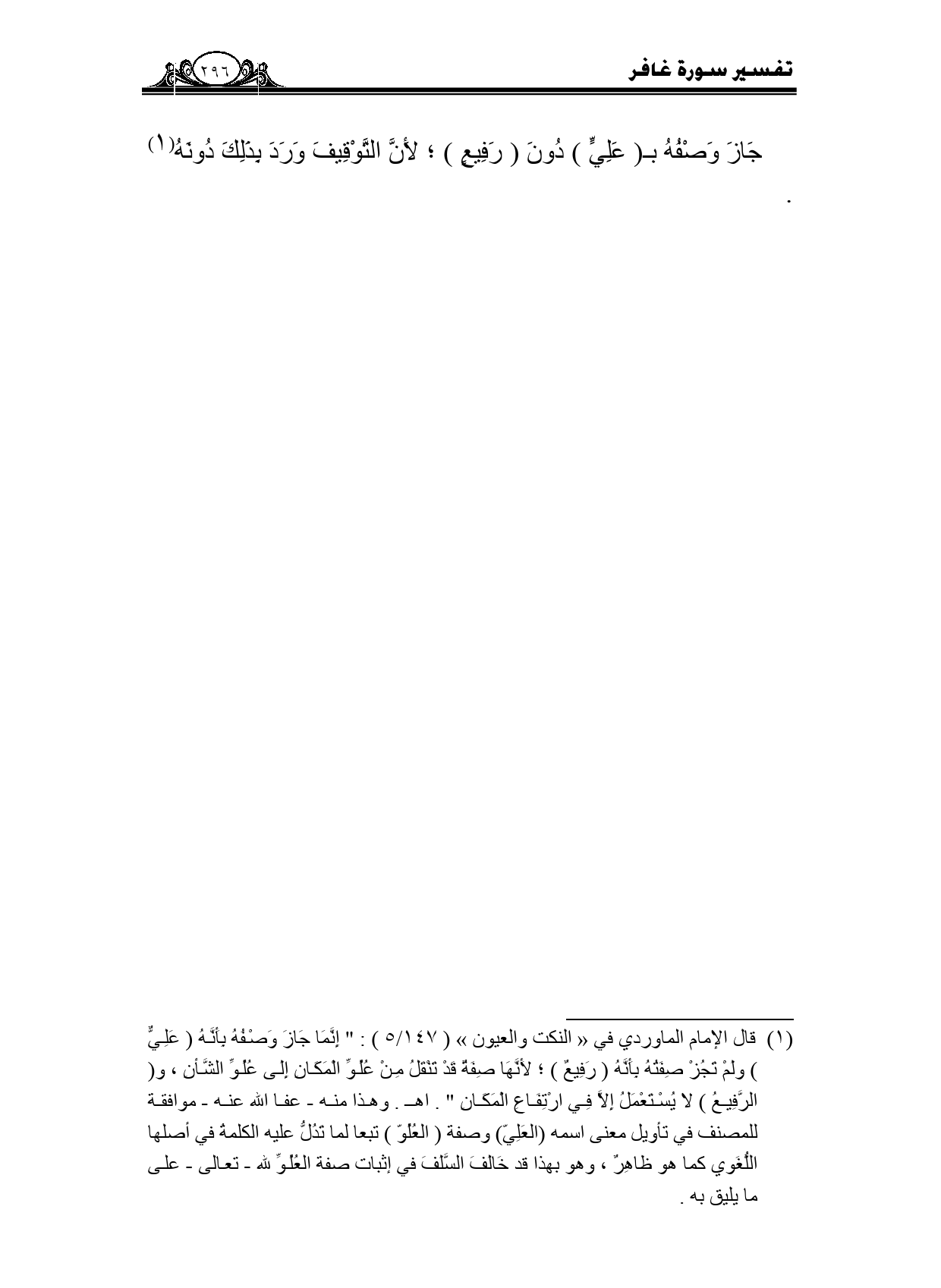جاز وصفه بـ (علي) دون (رفيع) ؛ لأن التوقيف ورد بذلك دونه.