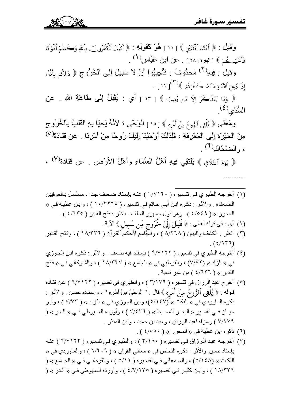 ومعنى {يُلْقِي الرُّوحَ مِنْ أَمْرِهِ} [15] الوحي؛ لأنه يحيا به القلب بالخروج من الحيرة إلى المعرفة، فلذلك أوحينا إليك روحا من أمرنا. عن قتادة، والضحاك.
