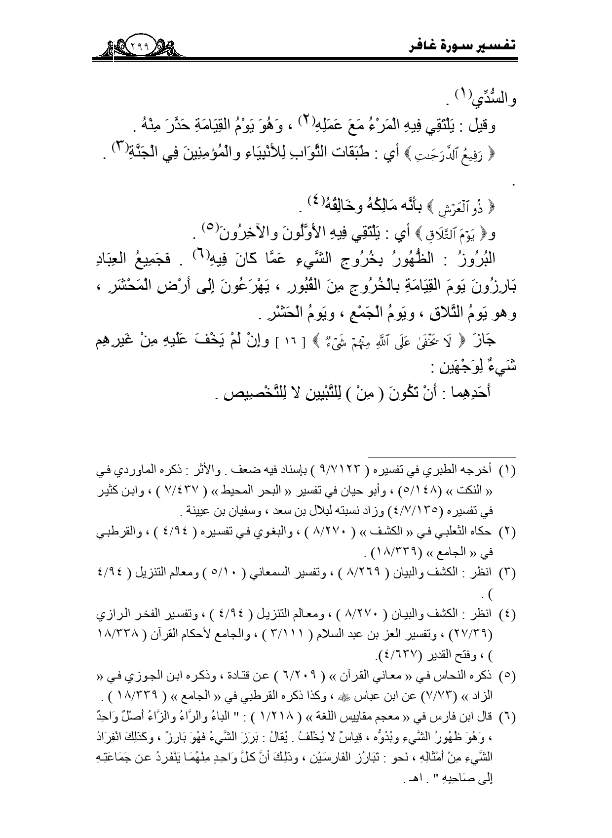 البروز: الظهور بخروج الشيء عما كان فيه. فجميع العباد بارزون يوم القيامة بالخروج من القبور، يهرعون إلى أرض المحشر، وهو يوم التلاق، ويوم الجمع، ويوم الحشر.