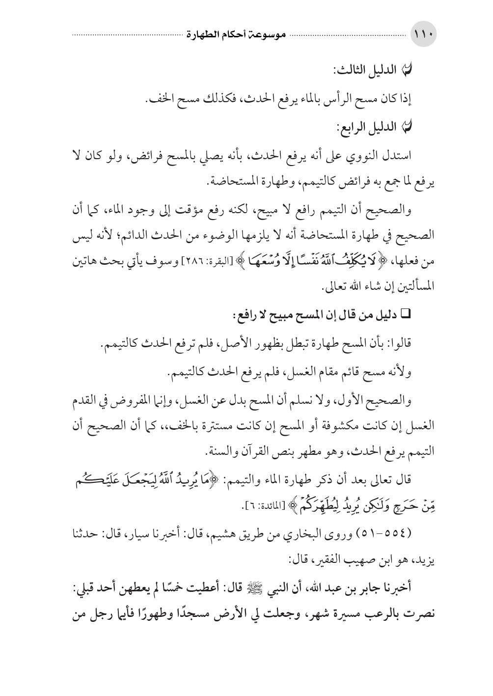 قال تعالى بعد أن ذكر طهارة الماء والتيمم: (مَا يُرِيدُ اللَّهُ لِيَجْعَلَ عَلَيْكُم مِّنْ حَرَجٍ وَلَكِن يُرِيدُ لِيُطَهِّرَكُمْ و) [المائدة: ٦].