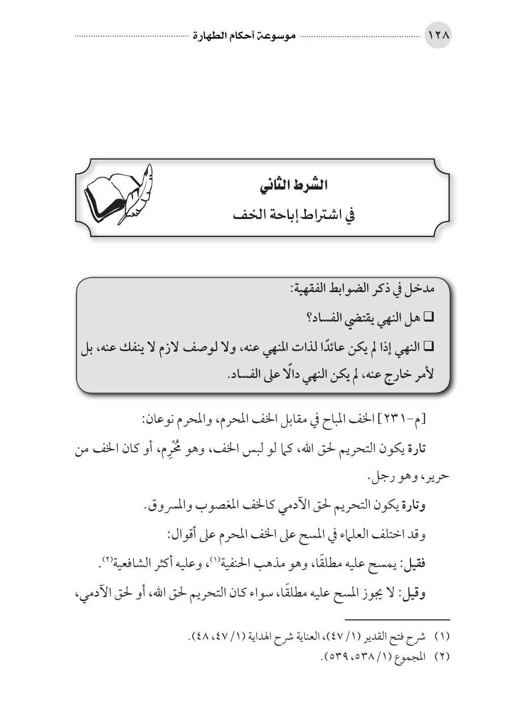 (¬١) شرح فتح القدير (١/ ٤٧)، العناية شرح الهداية (١/ ٤٧، ٤٨).