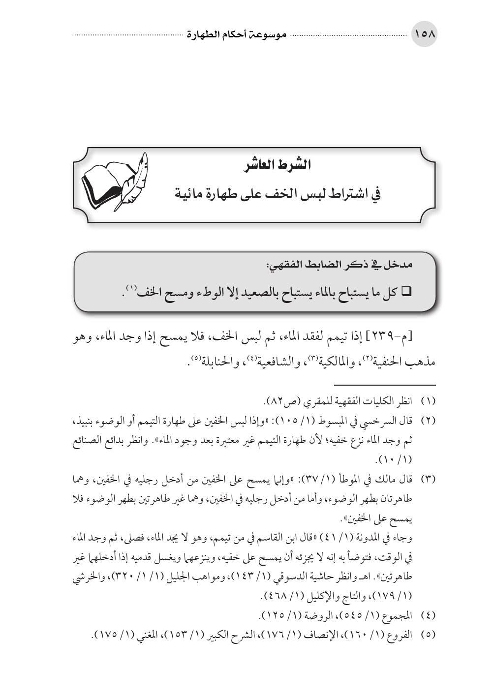 (¬٥) الفروع (١/ ١٦٠)، الإنصاف (١/ ١٧٦)، الشرح الكبير (١/ ١٥٣)، المغني (١/ ١٧٥).
