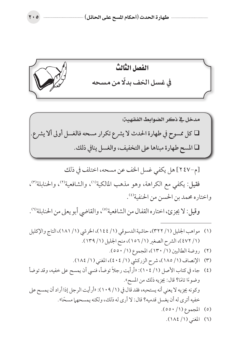 الفصل الثالث في غسل الخف بدلًا من مسحه