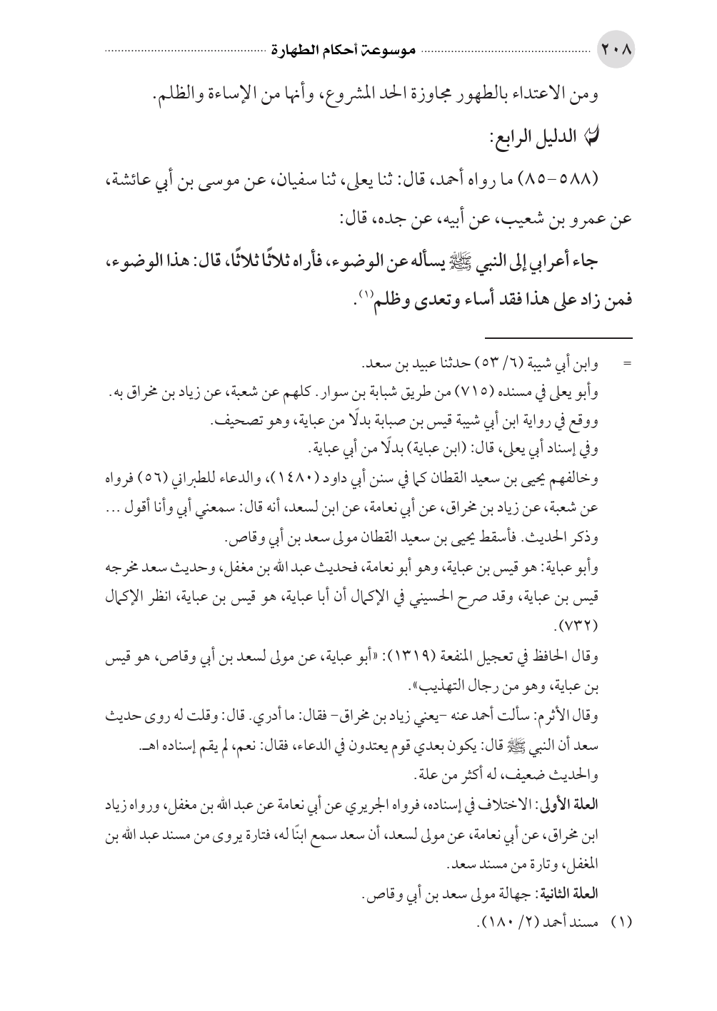 (٥٨٨ - ٨٥) ما رواه أحمد، قال: ثنا يعلى، ثنا سفيان، عن موسى بن أبي عائشة، عن عمرو بن شعيب، عن أبيه، عن جده، قال: