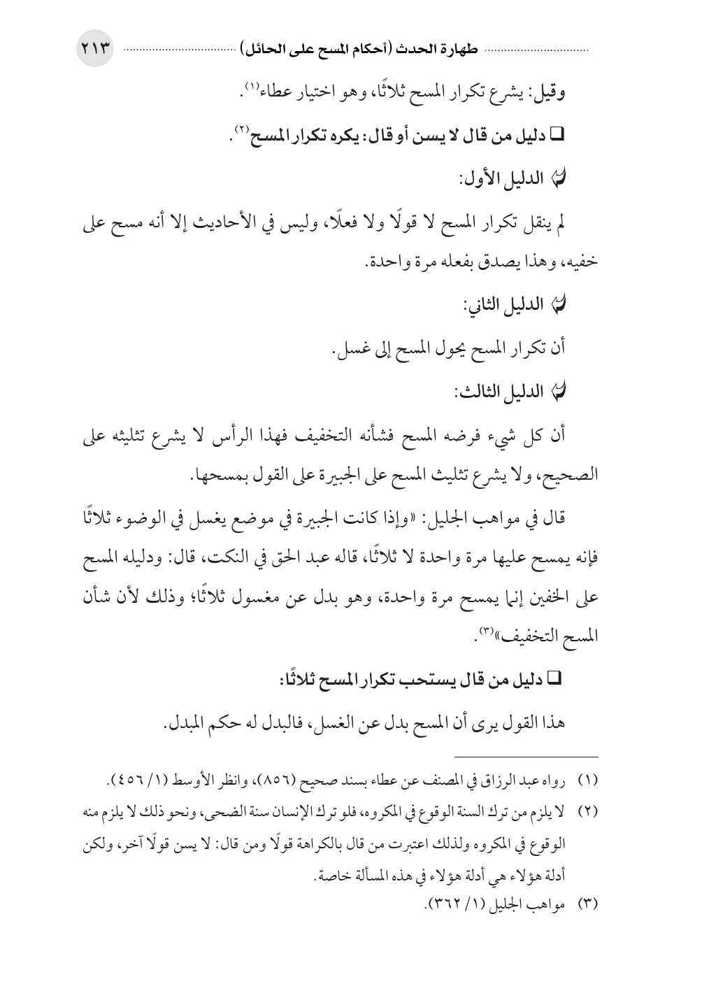 • دليل من قال يستحب تكرار المسح ثلاثًا: