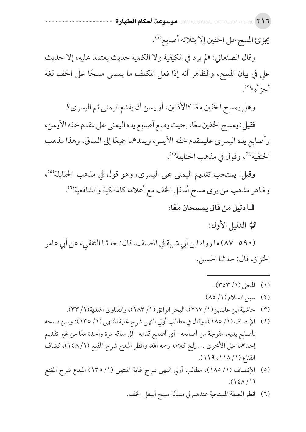 (¬٦) انظر الصفة المستحبة عندهم في مسألة مسح أسفل الخف.