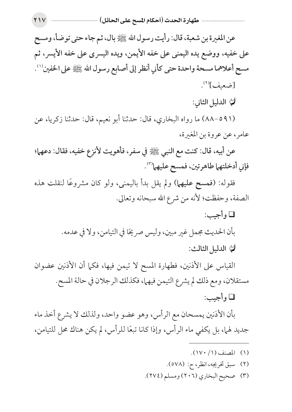 (٥٩١ - ٨٨) ما رواه البخاري، قال: حدثنا أبو نعيم، قال: حدثنا زكريا، عن عامر، عن عروة بن المغيرة،
