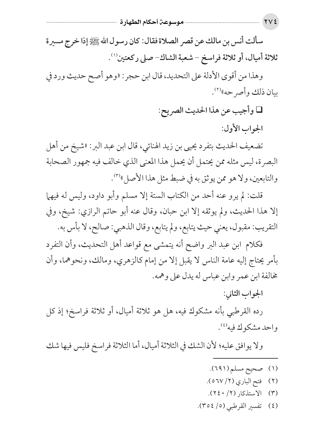 ولا يوافق عليه؛ لأن الشك في الثلاثة أميال، أما الثلاثة فراسخ فليس فيها شك