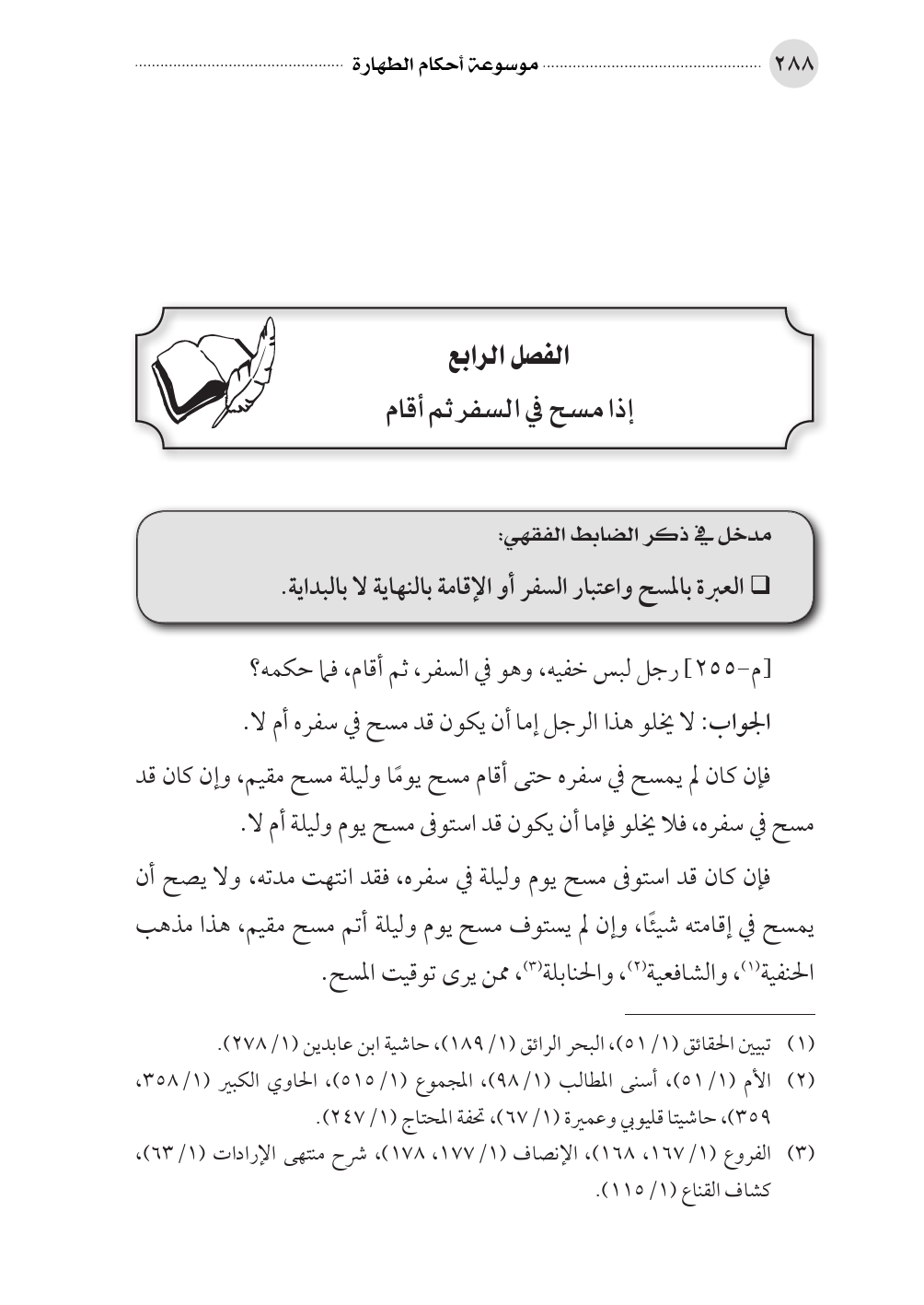 • العبرة بالمسح واعتبار السفر أو الإقامة بالنهاية لا بالبداية.