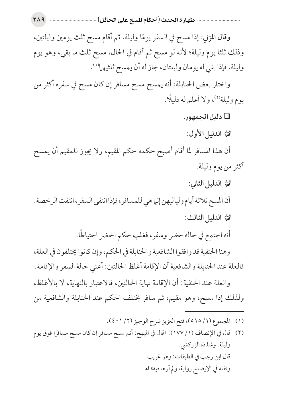(¬٢) قال في الإنصاف (١/ ١٧٧): «قال في المبهج: أتم مسح مسافر إن كان مسح مسافرًا فوق يوم وليلة. وشذذه الزركشي.