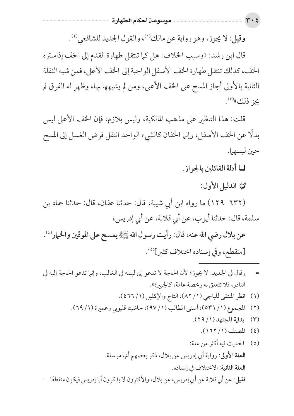 (¬١) انظر المنتقى للباجي (١/ ٨٢)، التاج والإكليل (١/ ٤٦٦).