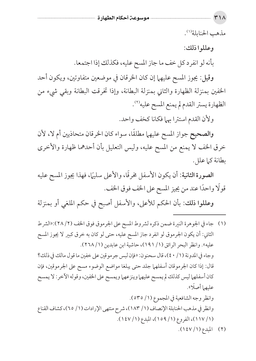 (¬١) جاء في الجوهرة النيرة ضمن ذكره لشروط المسح على الجرموق فوق الخف (٢/ ٢٨): «الشرط الثاني: أن يكون الجرموق لو انفرد جاز المسح عليه، حتى لو كان به خرق كبير لا يجوز المسح عليه». وانظر البحر الرائق (١/ ١٩١)، حاشية ابن عابدين (١/ ٢٦٨).