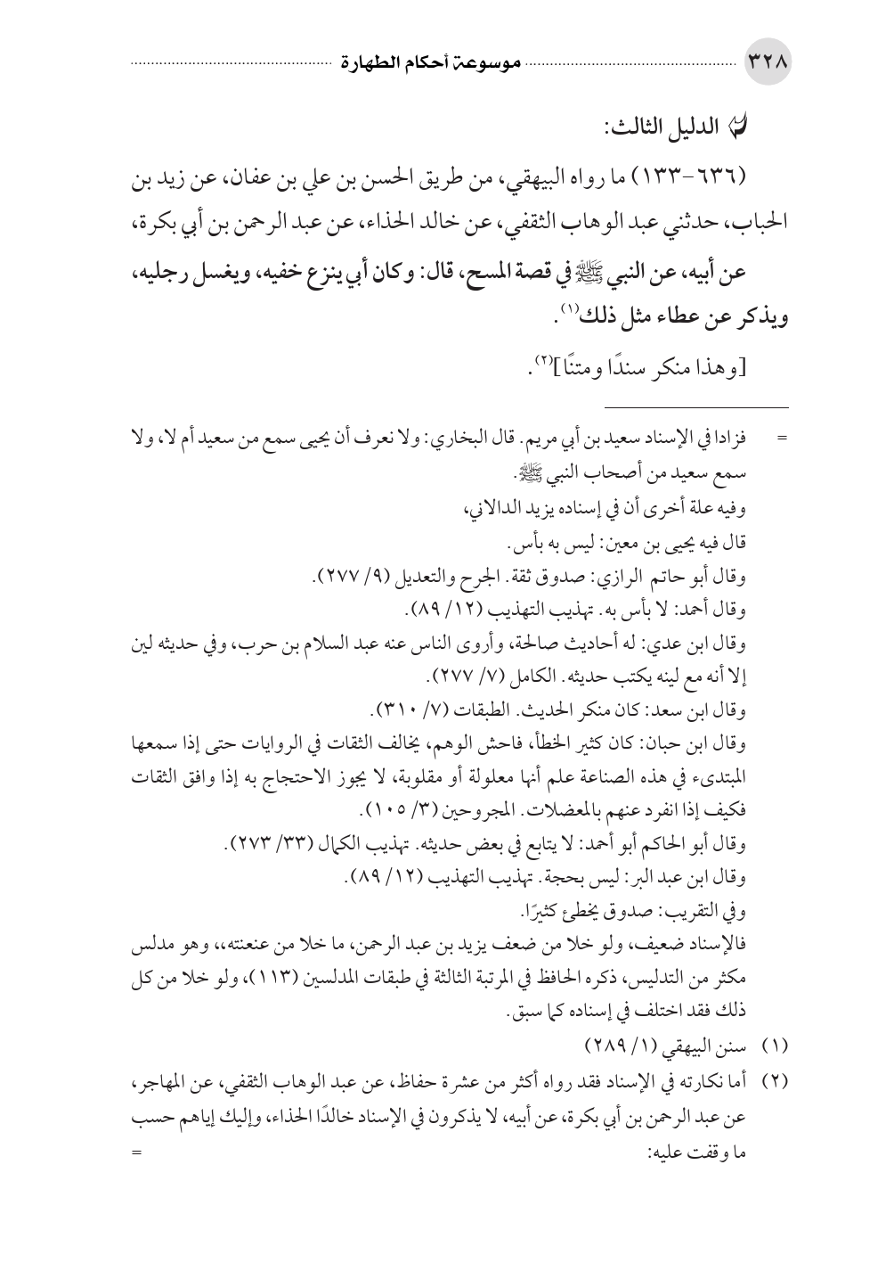 (٦٣٦ - ١٣٣) ما رواه البيهقي، من طريق الحسن بن علي بن عفان، عن زيد بن الحباب، حدثني عبد الوهاب الثقفي، عن خالد الحذاء، عن عبد الرحمن بن أبي بكرة،