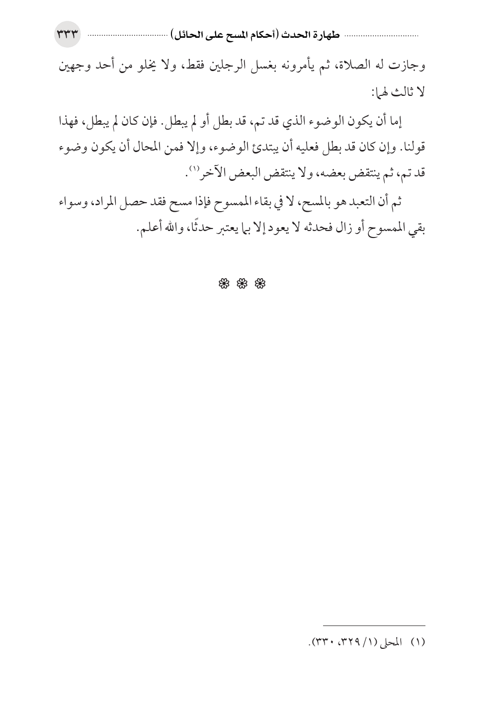 (¬١) المحلى (١/ ٣٢٩، ٣٣٠).