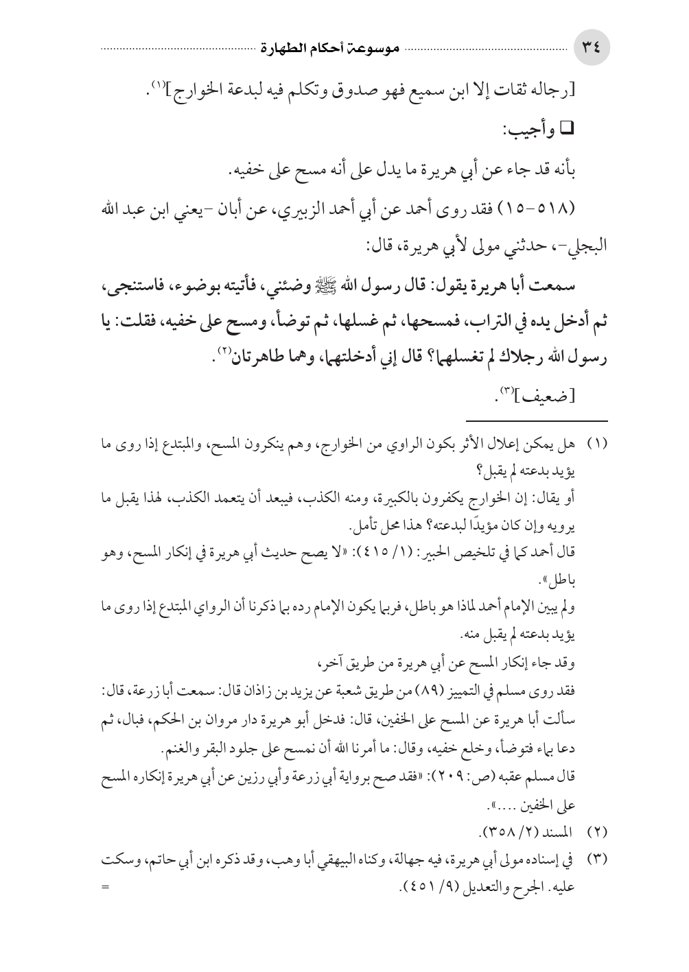 (¬١) هل يمكن إعلال الأثر بكون الراوي من الخوارج، وهم ينكرون المسح، والمبتدع إذا روى ما يؤيد بدعته لم يقبل؟