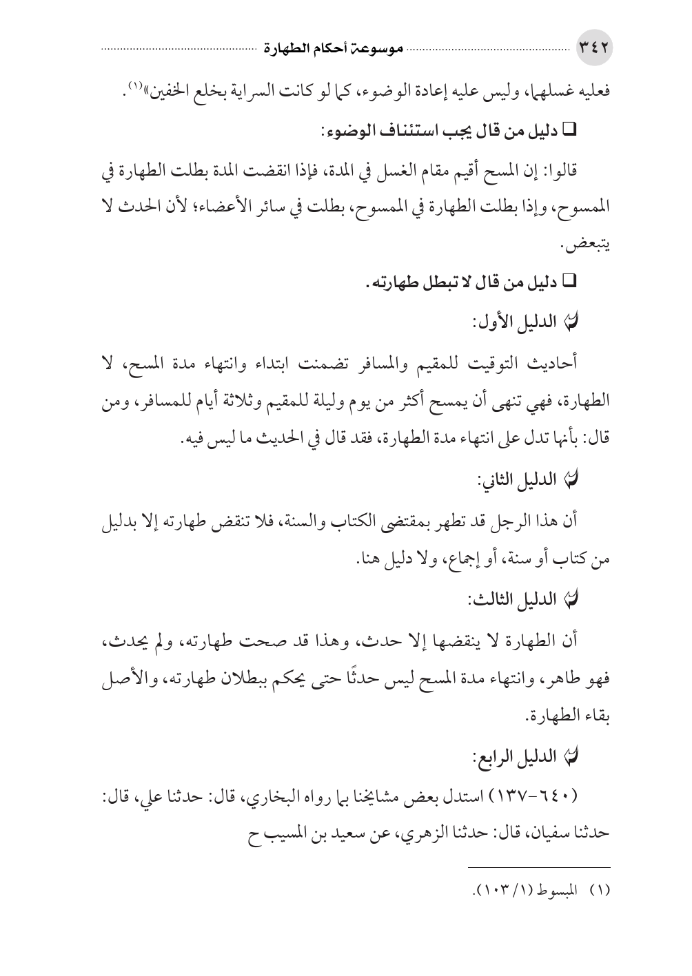 أحاديث التوقيت للمقيم والمسافر تضمنت ابتداء وانتهاء مدة المسح، لا الطهارة، فهي تنهى أن يمسح أكثر من يوم وليلة للمقيم وثلاثة أيام للمسافر، ومن قال: بأنها تدل على انتهاء مدة الطهارة، فقد قال في الحديث ما ليس فيه.