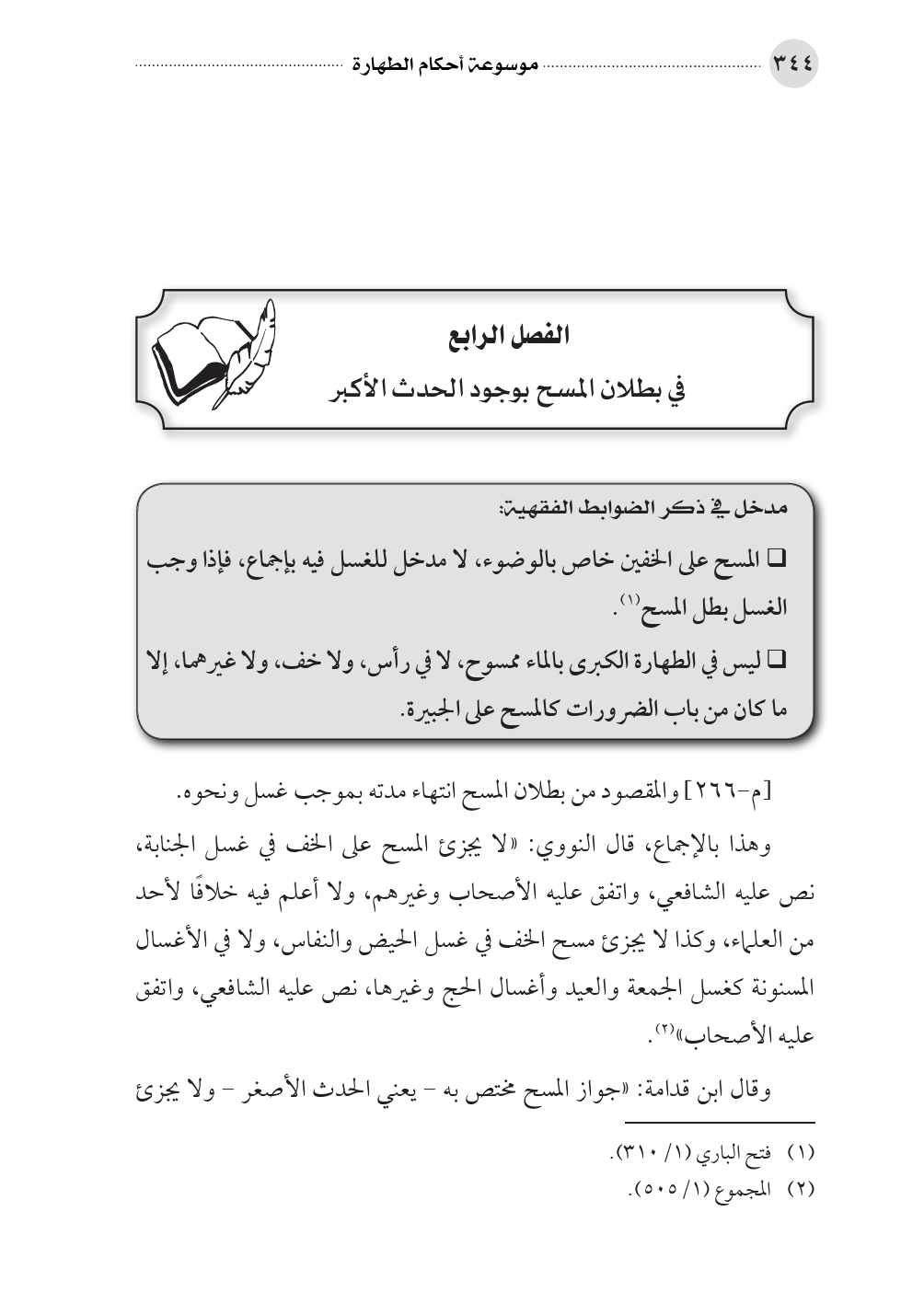 الفصل الرابع في بطلان المسح بوجود الحدث الأكبر