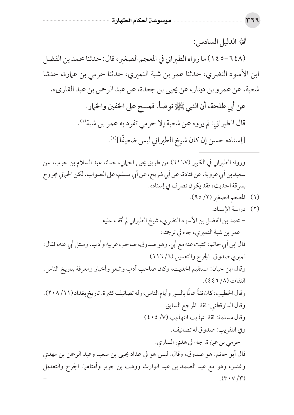(٦٤٨ - ١٤٥) ما رواه الطبراني في المعجم الصغير، قال: حدثنا محمد بن الفضل ابن الأسود النضري، حدثنا عمر بن شبة النميري، حدثنا حرمي بن عمارة، حدثنا شعبة، عن عمرو بن دينار، عن يحيى بن جعدة، عن عبد الرحمن بن عبد القارئ،