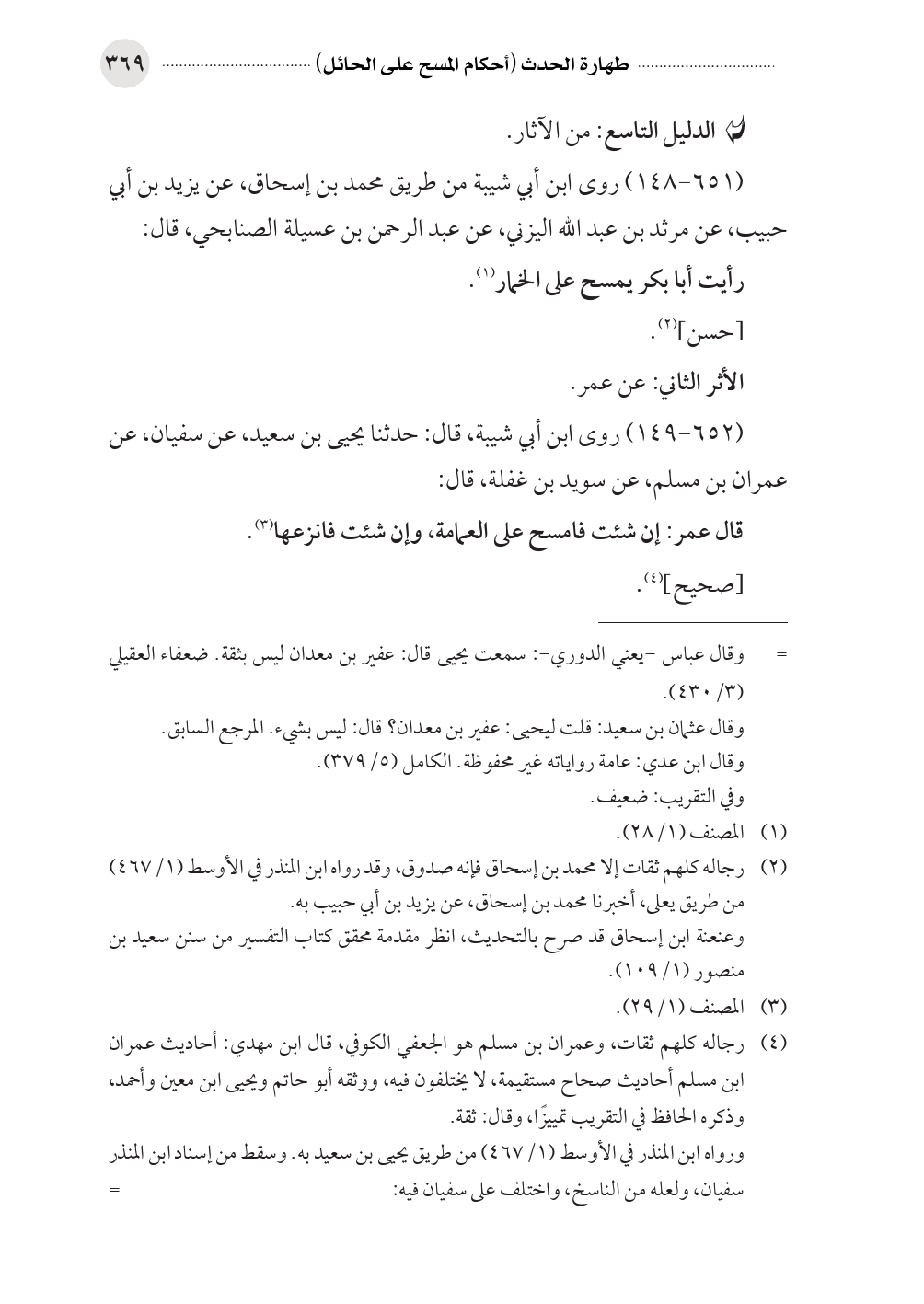 (٦٥٢ - ١٤٩) روى ابن أبي شيبة، قال: حدثنا يحيى بن سعيد، عن سفيان، عن عمران بن مسلم، عن سويد بن غفلة، قال: