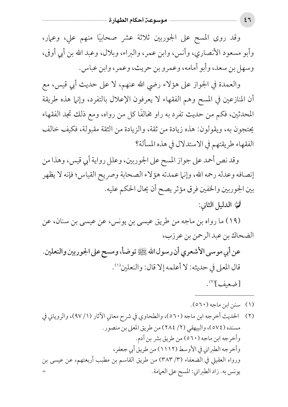وقد روى المسح على الجوربين ثلاثة عشر صحابيًا منهم علي، وعمار،