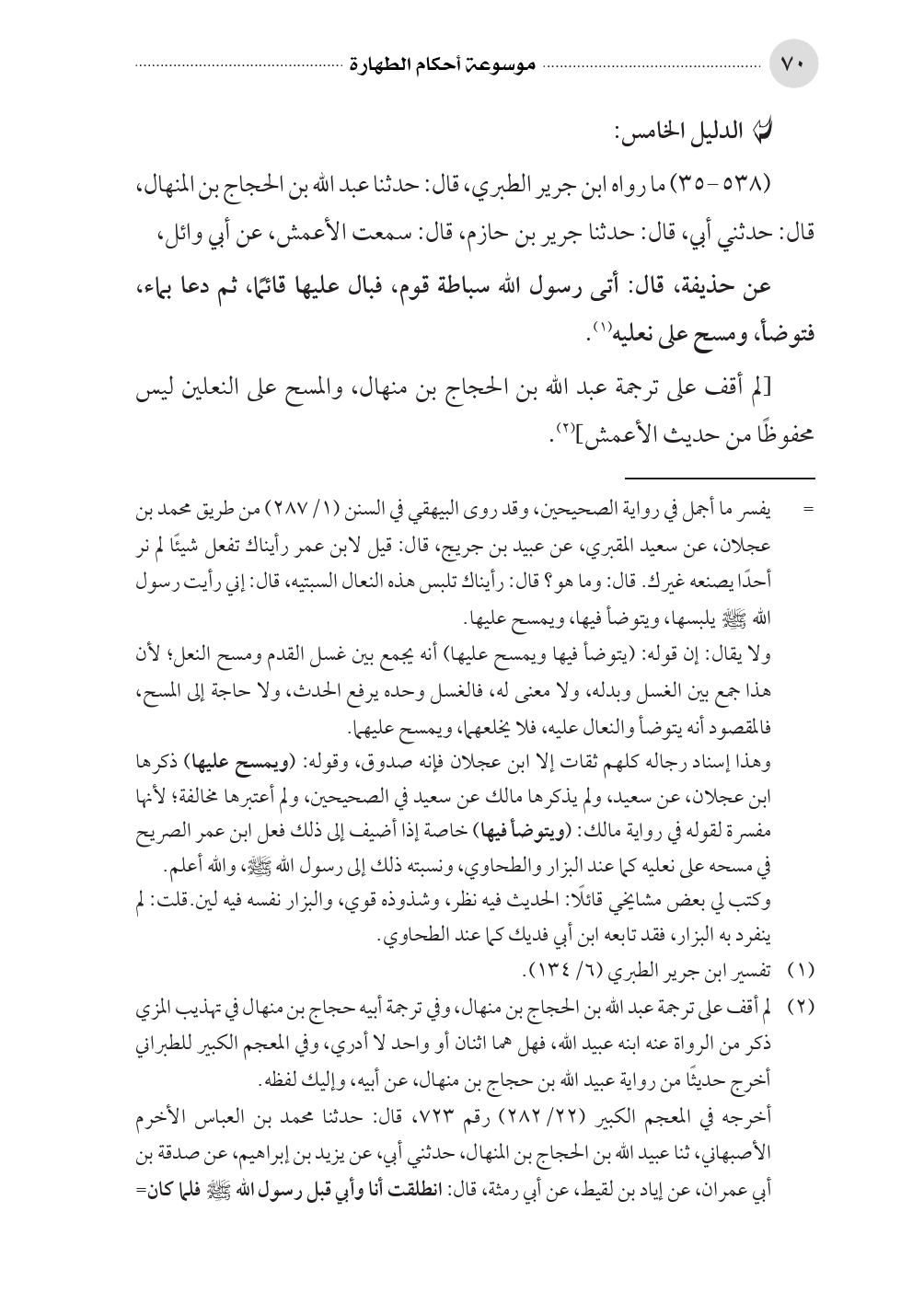 (٥٣٨ - ٣٥) ما رواه ابن جرير الطبري، قال: حدثنا عبد الله بن الحجاج بن المنهال، قال: حدثني أبي، قال: حدثنا جرير بن حازم، قال: سمعت الأعمش، عن أبي وائل،